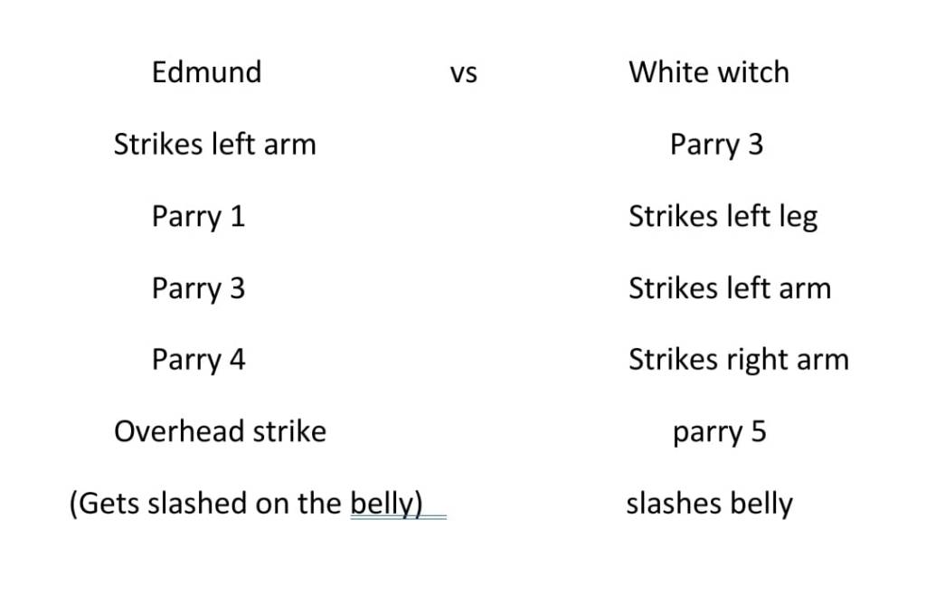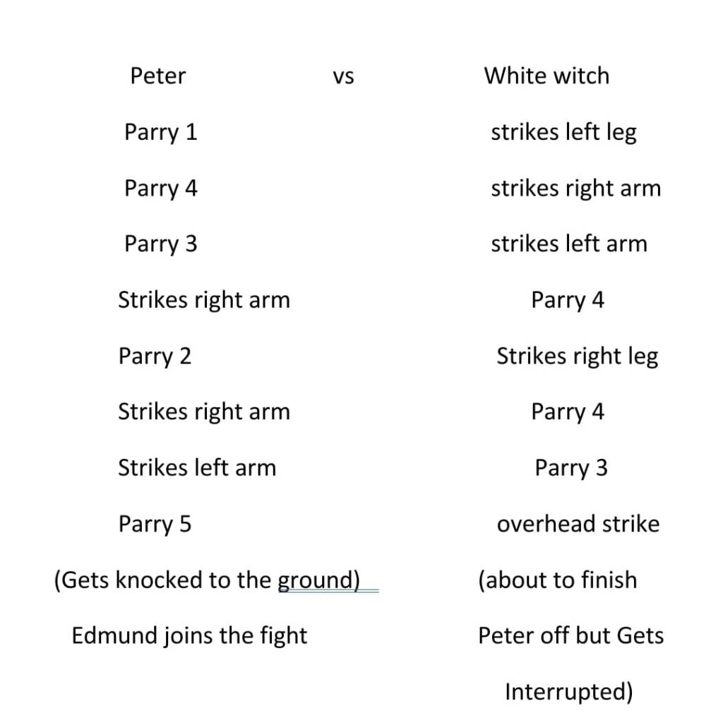I had to fill in for the White Witch so this is just Rubens Choreography at the moment. Ruben has had little to no previous experience in staged combat however he is a fast learner and was easy and pleasant to teach. He did not mess about and just got on with it. There is room for improvement but considering all that was done in one day i am proud.