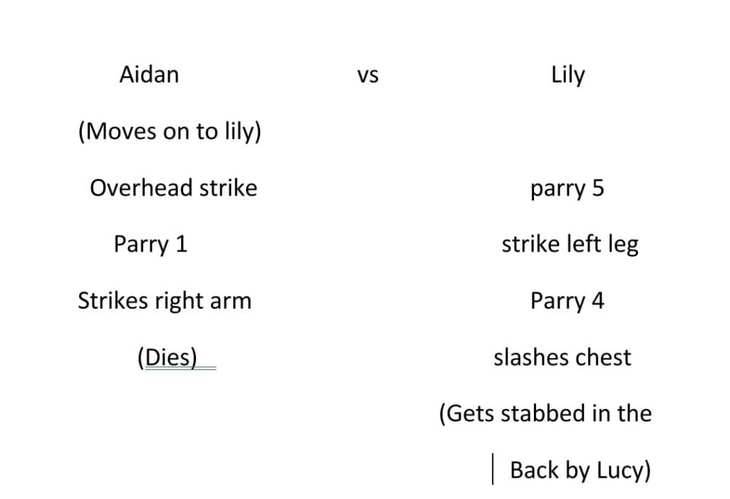 Aidan’s and Lily’s Fight was quite easy to choreograph since its so small, however Lily was unfocused and was messing about at the start, so I told her off and got her to be more focused on the task at hand. Once she was it was smooth sailing.